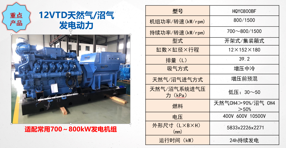 12VTD天然氣/沼氣發電動力